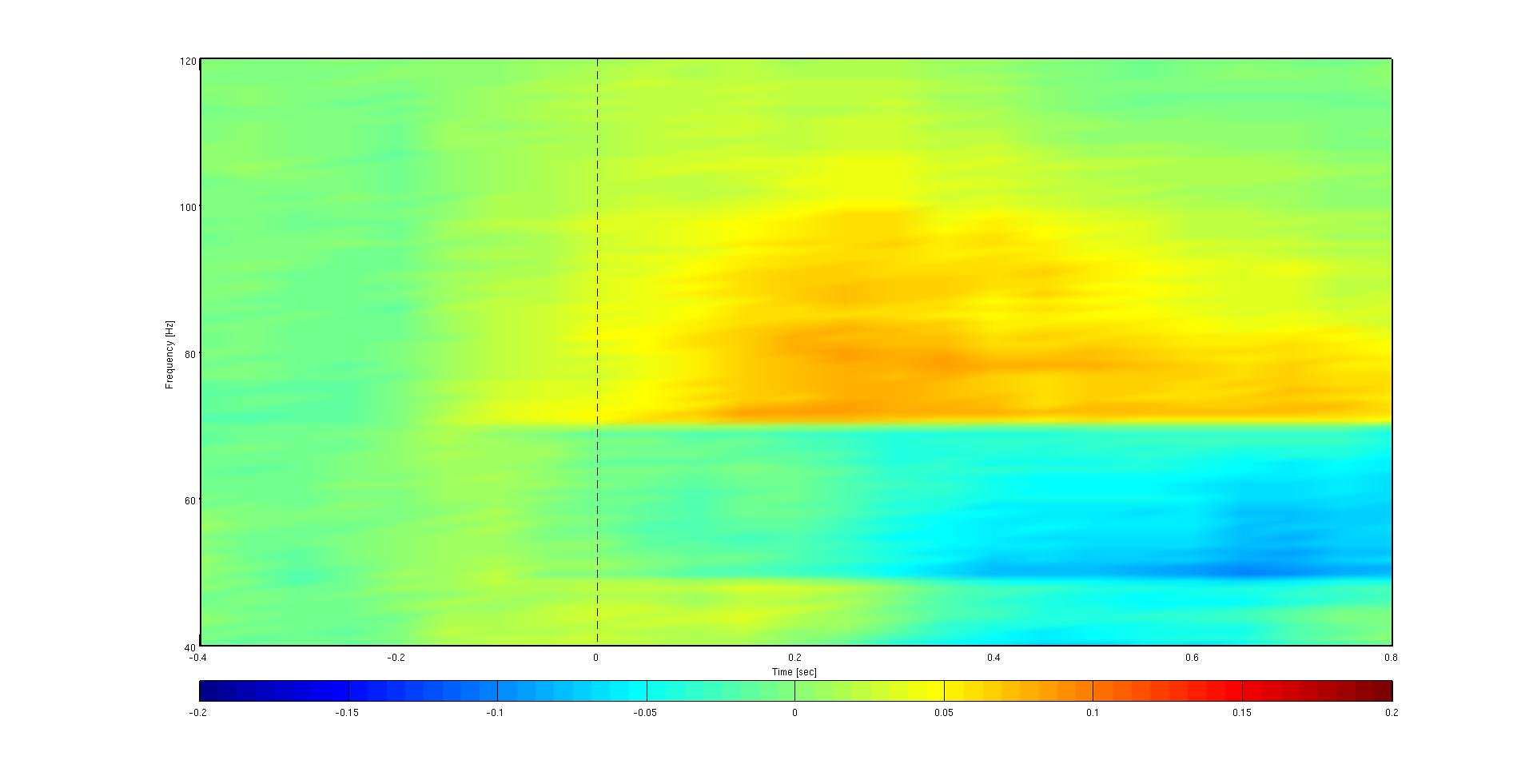 >> pcolor(GA_TFR_HighGamma{i}.time(time(1):time(2)),GA_TFR_HighGamma{i}.freq,squeeze(power));
