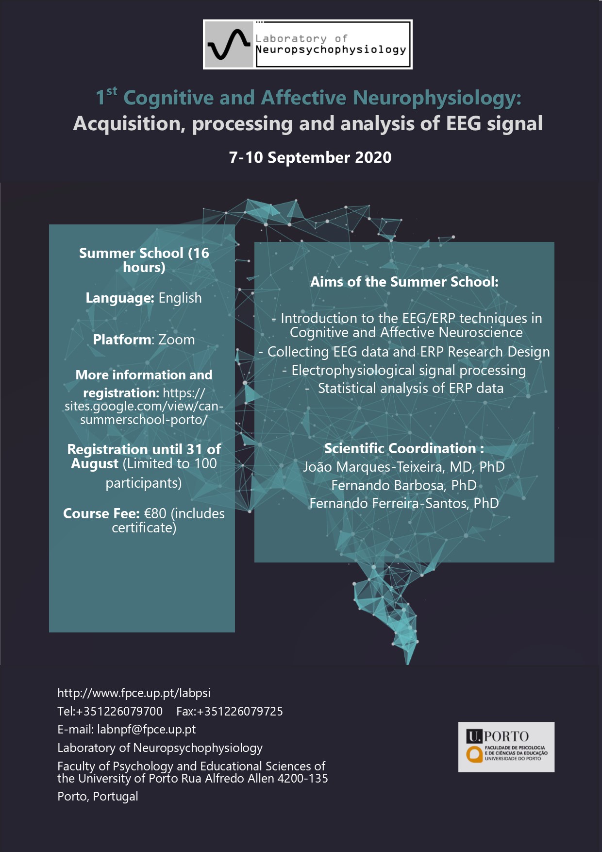 The Laboratory of Neuropsychopsysiology is pleased to announce the 1st Online Cognitive and Affective Neurophysiology Summer School from 7-10 September 2020 (16h course).